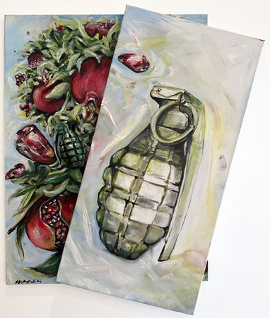 Paintings on Yupo paper, exploring the narratives of destruction-bullet casings-juxtaposed with signs of life.